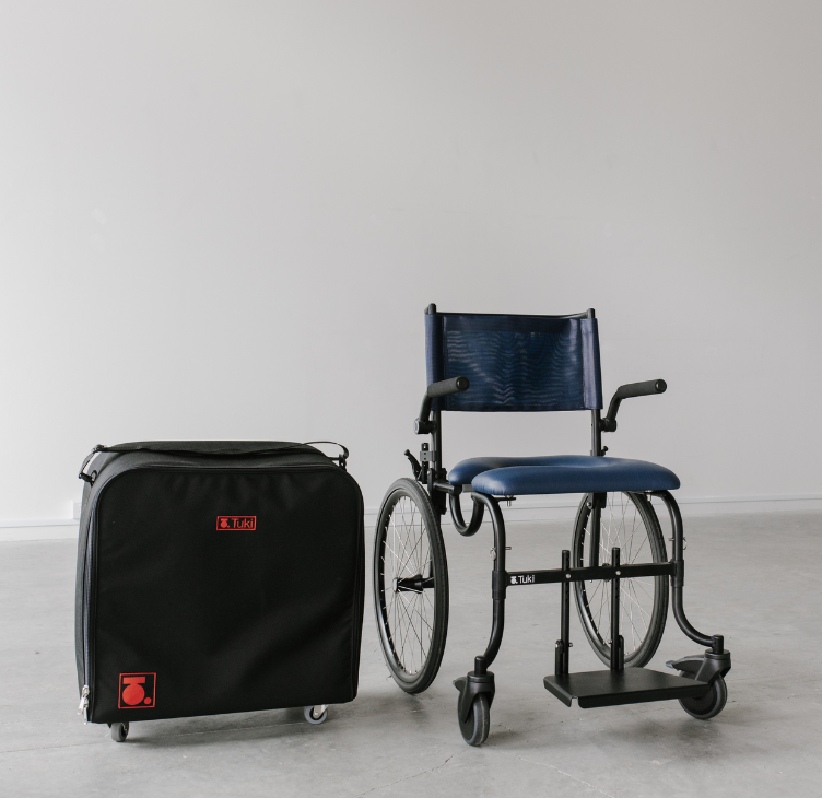 Weighing under 14kg, TUKI’s Travelling Shower Commode is one of the lightest self-propelled commodes on the market,  offering convenient portability. It packs down simply and intuitively into a wheelie bag that can fit in the car boot, or check it in under your weight allowance for your flight. Travelling has never been easier!